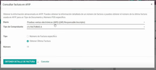 Tildar en tipo: “Obtener última factura”; luego click en “OBTENER DETALLE DE FACTURA”.